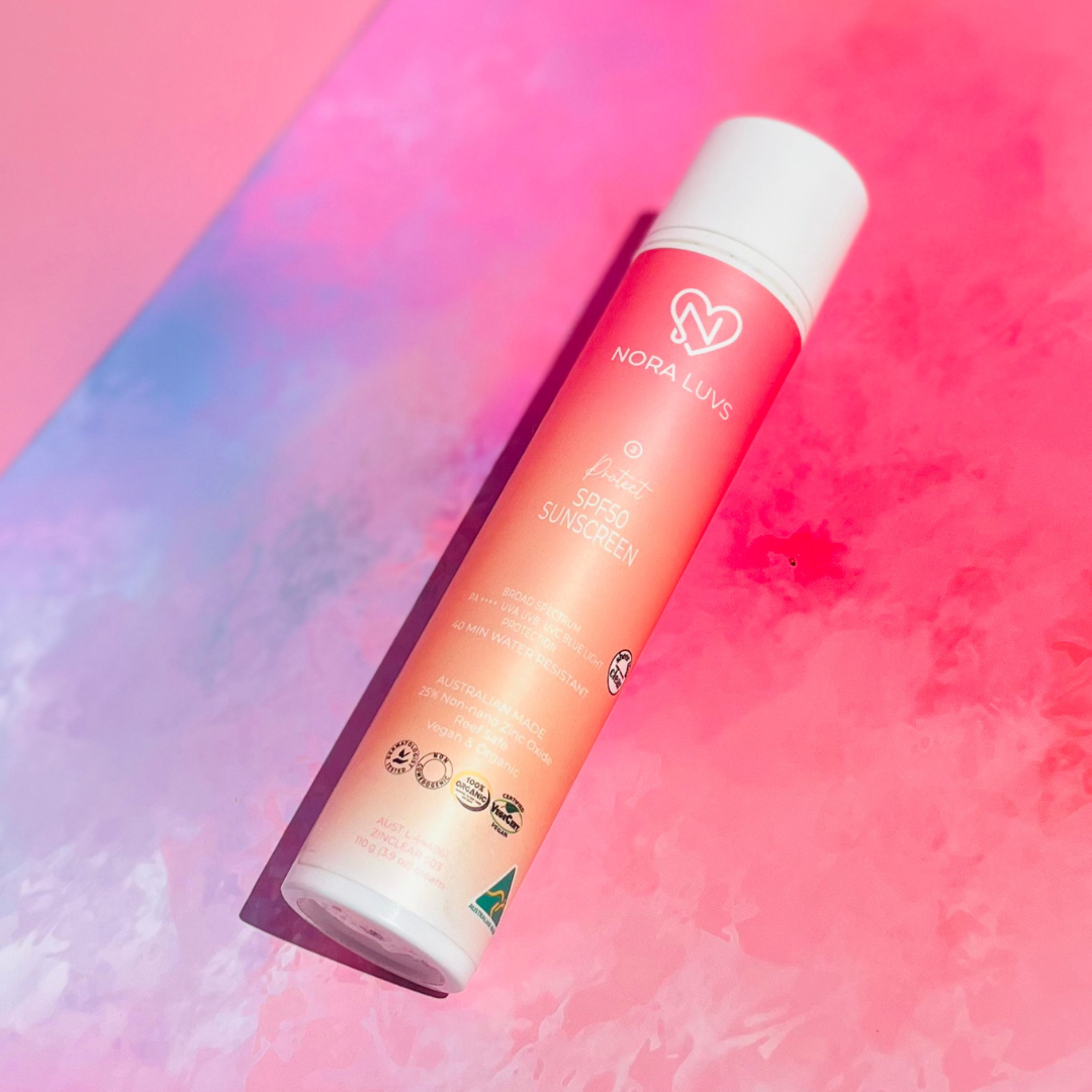 Introducing our NORA LUVS Protect SPF50- Step 3 in our NORA LUVS Skincare Routine- This UVA + UVB Broad spectrum, zinc based sunscreen that offers powerful protection that’s gentle on young skin! This natural, vegan sunscreen is perfect for all of your outdoor adventures.